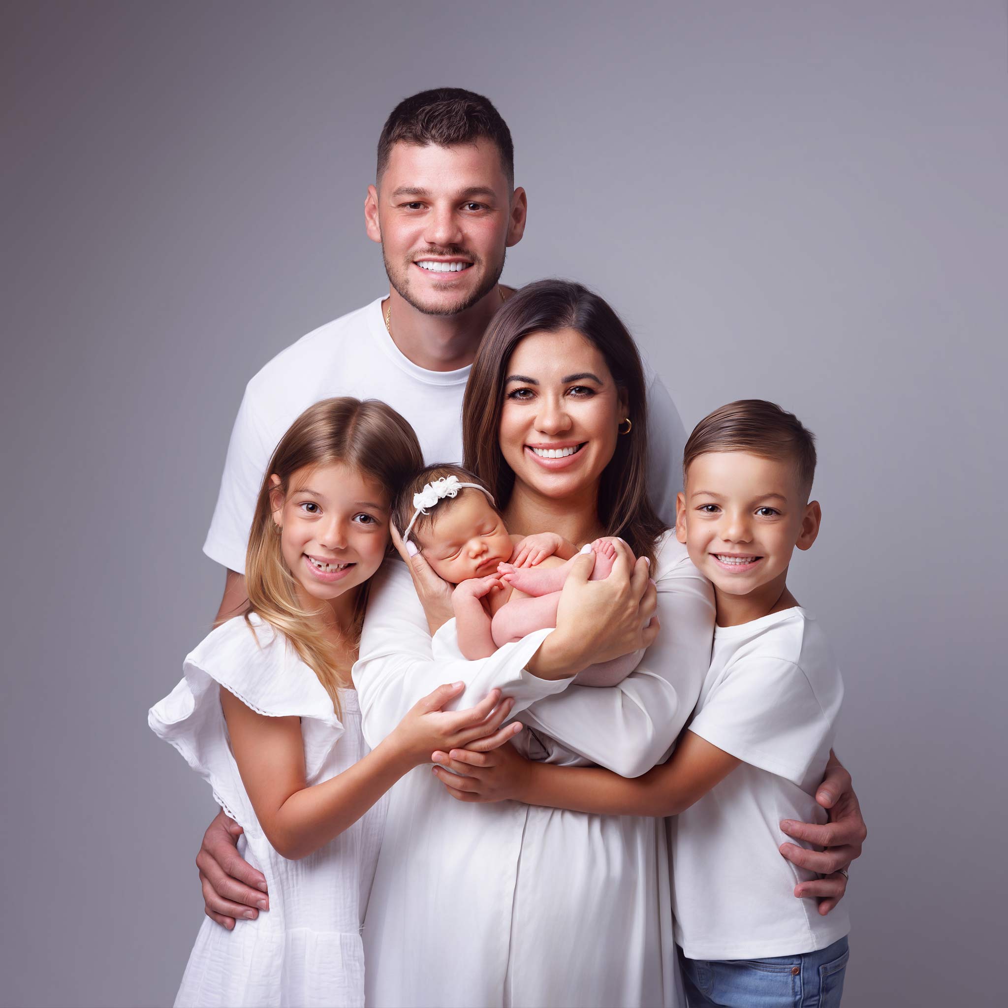 Big brother and sister finally get to proudly hold the newest addition to their family. Watching this journey come full circle has been such a joy. This family truly looks like they could step right out of a magazine. From the moment they walked into the studio, their natural warmth and stunning presence shone through. Every pose felt effortless, every smile genuine.