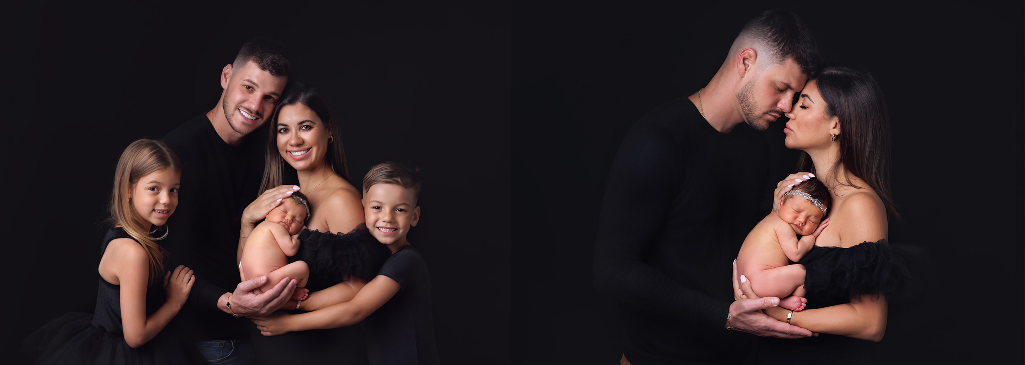 Elegant newborn photography session in Rahway, NJ – family and parents captured in timeless studio portraits.